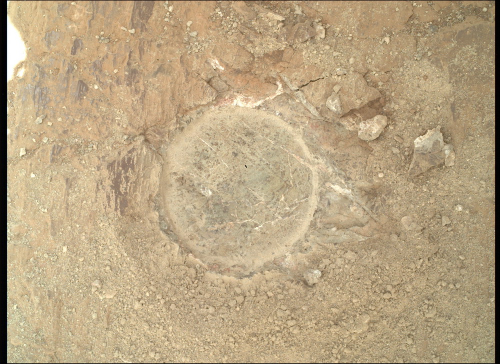 11 de diciembre de 2024, Perseverance ha continuado su recorrido turístico por el borde del cráter Jezero, y el itinerario de viaje de esta semana incluye una mirada de cerca al “Pico Turquino”. Aquí, el equipo espera investigar la historia registrada en esta región de aproximadamente 200 metros de largo de afloramiento expuesto. Estas rocas pueden revelar pistas de procesos geológicos antiguos, incluidos aquellos que anteceden o están relacionados con el violento impacto que formó el cráter Jezero. Recientemente, el equipo ha estado estudiando una serie de crestas aflorantes durante el ascenso del rover al borde del cráter, con el objetivo de caracterizar la diversidad compositiva y la estructura de estas rocas expuestas. Después de pasar en paralelo al Pico Turquino unos 70 metros al sur la semana pasada, el equipo planeó una aproximación cercana durante el fin de semana que posicionó al rover en el extremo suroeste de la cresta. Antes del recorrido de 107 metros en el sol 1332, el equipo planeó dos soles de teledetección dirigida con Mastcam-Z y SuperCam para investigar el regolito local y realizar imágenes de larga distancia de un escarpe empinado y un cráter de 20 metros de diámetro al noroeste. El exitoso recorrido de aproximación en el sol 1332 permitió al equipo comenzar la planificación del lunes con el foco puesto en evaluar el afloramiento apto para la ciencia de proximidad y reposicionar el rover para las próximas actividades de abrasión. Después de nuestras actividades de abrasión en Pico Turquino, el rover se pondrá en camino hacia su próxima parada científica en “Witch Hazel Hill”. Las vistas orbitales de Witch Hazel Hill sugieren que el área puede contener lechos rocosos estratificados y de tonos claros que probablemente registren información importante sobre el clima antiguo del planeta. Antes de llegar a Witch Hazel Hill, el rover planea pasar por un punto alto conocido como Lookout Hill, que le brindará al equipo vistas increíbles hacia el cráter, así como también echar un vistazo al oeste del terreno mucho más allá de Jezero. A través de este trabajo, el equipo científico de Perseverance espera desenterrar evidencia geológica que sea anterior o esté relacionada con el impacto que formó el cráter Jezero de 45 kilómetros de ancho, y potencialmente recolectar muestras para la campaña de Retorno de Muestras de Marte planificada por la NASA. En última instancia, Perseverance está buscando señales de posible vida en Marte, y tal vez las rocas de Pico Turquino puedan contener algunas pistas. El viaje comenzó en agosto, cuando Perseverance abandonó la región del valle de Neretva para realizar la escalada de aproximadamente 305 m hasta la cima del borde de Jezero. Y durante meses, el rover ha maniobrado delicadamente por el difícil terreno de corteza frágil; la parte superior del borde tiene una pendiente de aproximadamente 20º y está cubierta de arena resbaladiza y polvo. En Pico Turquino, una meseta de lecho rocoso en el borde del cráter Jezero, los equipos de ciencia e ingeniería planearon realizar estudios de proximidad en el área de abrasión número 30 de Percy, Río Chiquito. SCAM y ZCAM caracterizaron la roca cerca de la abrasión, mientras que los instrumentos SHERLOC y PIXL se desplegaron para los estudios de proximidad. Los datos de Río Chiquito ayudarán a caracterizar el área de Pico Turquino, además de ayudar a los científicos a comprender la historia más amplia y la compleja historia geológica del cráter Jezero. Una vista aérea en color de primer plano de un punto en la superficie marciana, un terreno duro y plano de color blanquecino y tostado muy claro. En el centro de la imagen hay un círculo perfecto excavado en el suelo, a una profundidad muy superficial. Alrededor del círculo se encuentran los montículos de tierra y grava excavados en este lugar. El montículo ligeramente más grande en la parte superior apunta hacia la parte superior del marco; el montículo en la parte inferior es más pequeño y más redondeado, y ambos se estrechan en los lados del agujero. En conjunto, el círculo erosionado y los montículos de arriba y de abajo se asemejan a un ojo humano sin pupila tallado en una antigua estatua de piedra. Después de alcanzar el hito de abrasión número 30, Percy, junto con el equipo del rover en la Tierra, se tomó un par de soles de merecido descanso durante las vacaciones de Acción de Gracias antes de volver al trabajo. Desde entonces, Percy ha dejado Pico Turquino y ha comenzado a trasladarse a la siguiente parada geológicamente significativa, llamada Witch Hazel Hill. También hay una parada prevista en el camino cerca del punto más alto del borde del cráter que atravesará el rover, un lugar llamado acertadamente "Lookout Hill" donde tendremos vistas espectaculares tanto del interior del cráter Jezero como del paisaje circundante, como si estuviéramos en una torre de vigilancia. El camino para llegar a estas paradas está cubierto en su mayor parte de regolito (suelo) y carece de afloramientos rocosos interesantes, por lo que el enfoque del equipo durante las próximas semanas es realizar y monitorear el progreso del recorrido. Sin embargo, mientras el rover avanza, seguirá teniendo cámaras científicas enfocadas en afloramientos rocosos interesantes en las colinas distantes para recopilar pistas adicionales sobre las rocas que forman el borde del cráter Jezero.