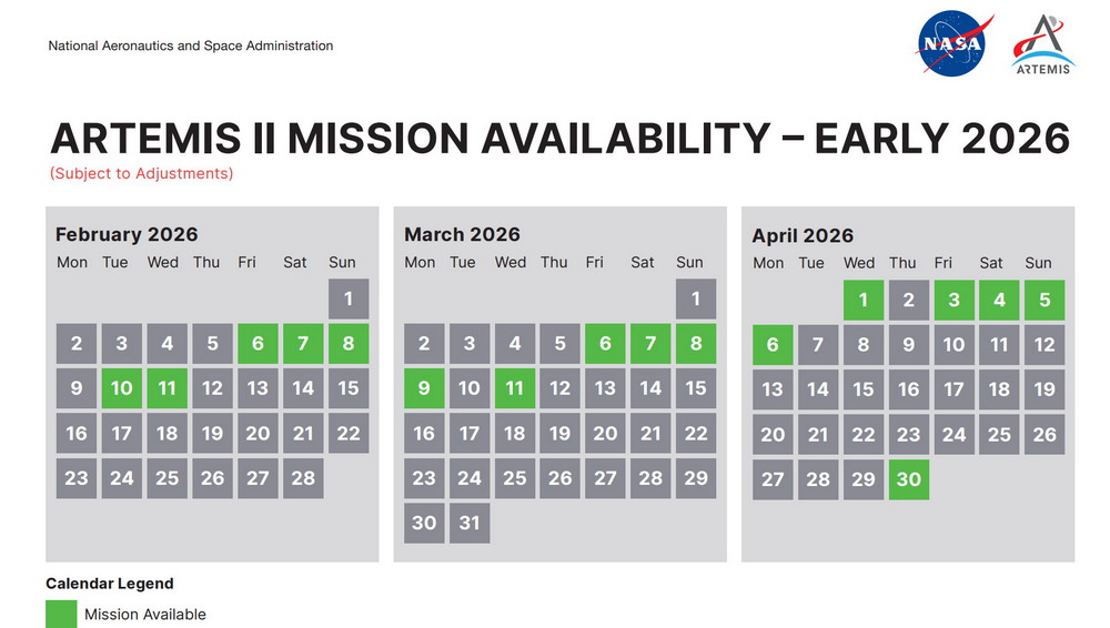 2 de febrero de 2026, el viernes 30 de enero, la NASA declaró que el plan para cargar el cohete de 108 metros de altura con más de 2.650.000 litros de oxígeno e hidrógeno líquidos tendría que esperar hasta que mejoren las condiciones climáticas. La agencia ahora tiene previsto el lunes 2 de febrero para la fase de llenado de lo que se conoce como el ensayo general húmedo. “Durante los últimos días, los ingenieros han estado monitoreando de cerca las condiciones a medida que el frío y los vientos se desplazan por Florida”, declaró la NASA en un comunicado. “Los administradores han evaluado las capacidades del hardware en función del pronóstico, dado el inusual brote ártico que afecta al estado, y decidieron cambiar el cronograma. Los equipos y los preparativos en la plataforma de lanzamiento siguen listos para el ensayo general en húmedo”. El retraso en las pruebas también significa que la primera fecha posible de lanzamiento para Artemis 2 no será antes del 8 de febrero. Este cambio reduce las fechas disponibles para el lanzamiento de Artemis 2 en febrero a tres opciones: 8, 10 u 11 de febrero. Steve Stich, gerente del Programa de Tripulación Comercial de la NASA, afirmó que, si bien el 11 de febrero es la fecha más temprana posible para el vuelo de la Crew-12, la prioridad de la agencia será brindar el mayor número posible de oportunidades para el lanzamiento de la misión Artemis 2. Añadió que si la prueba de llenado del cohete SLS sale bien y la revisión de preparación para el vuelo autoriza el lanzamiento de Artemis 2 el 8 de febrero, se plantean dos escenarios diferentes. La cuenta regresiva comenzó el 1 de febrero a 48 horas, 40 minutos antes de la apertura de una ventana de lanzamiento simulada para el lunes 2 de febrero. Se espera que la prueba se prolongue aproximadamente hasta el 3 de febrero. Afrontando temperaturas bajo cero poco comunes, los trabajadores del KSC continuaron con la cuenta regresiva de ensayo general el domingo 1, preparando el enorme cohete SLS de la NASA para una crucial prueba de abastecimiento de combustible el lunes, despejando el camino para el lanzamiento de un vuelo que enviará a cuatro astronautas en un vuelo alrededor de la Luna.