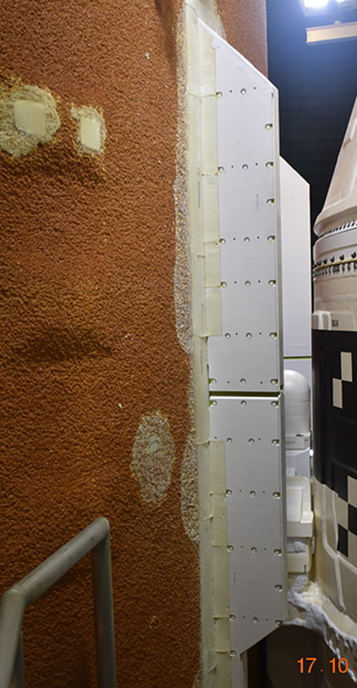 14 de enero de 2026, estamos pendientes de cuando la NASA da el visto bueno para que SLS (Space Launch System) y por supuesto la cápsula Orion de Artemis 2 se ponga en camino de la rampa de lanzamiento 39B de Cabo Cañaveral. No obstante, llegan informes de lo que en su momento comenté sobre una de las modificaciones de SLS respecto al disparo de Artemis 1. El cohete del Sistema de Lanzamiento Espacial (SLS), con las láminas metálicas diseñadas por Boeing ya instaladas, se prepara para su lanzamiento en el Kennedy Space Center. Cuando el cohete lunar Artemis 2 se desplace hacia la plataforma de lanzamiento, es posible que notes que incorpora nuevo hardware diseñado por Boeing para mejorar el flujo de aire. Tras el exitoso lanzamiento de Artemis 1 en 2022, Boeing y la NASA evaluaron los datos posteriores al vuelo y descubrieron que el cohete del Sistema de Lanzamiento Espacial (SLS) experimentó vibraciones más altas de lo esperado cerca de los puntos de unión del cohete propulsor sólido. Junto con la NASA, el equipo SLS de Boeing aprovechó este desafío para perfeccionar sus capacidades de análisis y modelado. Tras perfeccionar las pruebas en el túnel de viento y las simulaciones de dinámica de fluidos computacional, el equipo identificó rápidamente una solución sencilla y eficaz: cuatro tracas (estructuras metálicas delgadas, similares a aletas) añadidas a la etapa central para controlar el flujo inestable y reducir la vibración en Artemis 2 y futuras misiones. Las tracas son comunes en el diseño de aeronaves, pero nuevas en la etapa central del SLS.El equipo analizó datos del túnel de viento y simulaciones de dinámica de fluidos computacional para dimensionar y colocar las tracas metálicas y lograr un rendimiento óptimo. Al perfeccionar sus herramientas de análisis y agilizar las decisiones con la NASA, los ingenieros de Boeing pudieron trasladar rápidamente las mejoras de modelado al hardware, implementando el cambio a tiempo para el siguiente vuelo. “Inmediatamente formamos un equipo: lo mejor de lo mejor”, dijo Brandon Burroughs, Líder del Equipo de Implementación de Tracas. “El equipo trabajó sin descanso, incluso durante las vacaciones de fin de año. Al colaborar estrechamente con la NASA y optimizar los procesos, logramos en semanas lo que normalmente se haría en años”. Los equipos practicaron la perforación del tanque en Huntsville, Alabama, para prepararse para la operación de perforación en el Kennedy Space Center de la NASA. El equipo y las tracas estaban listos para su instalación antes de que la etapa central estuviera completamente instalada en el lanzador móvil, evitando así los problemas de acceso causados por los propulsores cercanos.