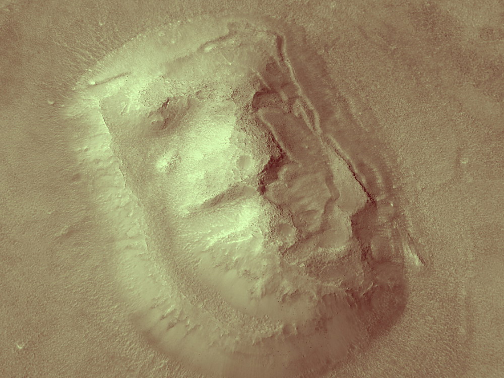 30 de mayo de 2025, la nueva imagen, tomada por la Cámara Estéreo de Alta Resolución (HRSC) de Mars Express en octubre de 2024, muestra Deuteronilus Cavus, una depresión de aproximadamente 120 km de ancho situada en la zona de transición entre las escarpadas tierras altas del sur del planeta y las más suaves tierras bajas del norte. Esta formación se ha creado durante mucho tiempo, conservando detalles de la actividad volcánica, glacial, hídrica y eólica a lo largo de cuatro mil millones de años de historia. Su forma casi circular sugiere que se originó por un cráter de impacto. La colisión probablemente ocurrió hace entre 4100 y 3700 millones de años, cuando el planeta estaba siendo azotado por asteroides y cometas. Con el tiempo, la erosión causada por el agua y el hielo ha remodelado el cráter original, ampliándolo hasta casi el doble de su tamaño inicial. El borde del cráter está cortado por canales (véase el primer plano del «canal ramificado»). Estos canales podrían haberse formado inicialmente por el agua que fluía por la superficie marciana, o por el drenaje del agua subterránea, colapsando la superficie debilitada superior. La textura superficial acanalada de algunos de los canales y nichos cortados en el borde del cráter indica la presencia previa de hielo. Los surcos lineales indican dónde se arrastraron las rocas congeladas en la base de un glaciar, excavando las depresiones visibles hoy en día. Alrededor de la base de las paredes internas del cráter, se pueden observar los extremos lisos y en forma de lengua de los glaciares cubiertos de roca (véase el primer plano del «flujo glacial»). Estas «plataformas de escombros» se formaron cuando el hielo se mezcló con escombros rocosos a lo largo de las paredes del cráter durante un período de glaciación y se deslizaron lentamente ladera abajo.Deuteronilus Cavus se encuentra en las latitudes medias de Marte, por lo que se cree que los glaciares se formaron en esta región cuando el eje del planeta estaba más inclinado con respecto al Sol que en la actualidad. Dentro del cráter se encuentra una mezcla desordenada de protuberancias gruesas, mesetas, canales y llanuras más suaves, que recuerdan a un pastel de chocolate (véase el primer plano de los bloques desordenados). En lugar de nubes sobre un mar de chocolate derretido, aquí encontramos bloques de roca más resistentes (protuberancias y mesetas) que han resistido la erosión del viento, el agua o el hielo que fluye a su alrededor. Los bloques bien podrían ser los restos de un pico de roca colapsado que alguna vez estuvo en el centro del cráter, aunque esta compleja colección de características es típica de la región en general. Gran parte del interior del cráter está cubierto por un depósito oscuro, probablemente ceniza volcánica arrastrada por el viento. Se sabe que los depósitos más brillantes que brillan a través del material oscuro contienen minerales arcillosos, formados por la mezcla de ceniza volcánica con agua, lo que sugiere que el agua líquida pudo haber estado estancada aquí durante algún tiempo. Otras evidencias de actividad volcánica se observan en las crestas arrugadas que se extienden por el terreno más liso que rodea el cráter, formadas por el enfriamiento y la contracción de los flujos de lava. Este cráter, repleto de características, posee todos los ingredientes para explorar los variados procesos geológicos de Marte, ofreciéndonos una fascinante muestra de su compleja historia.