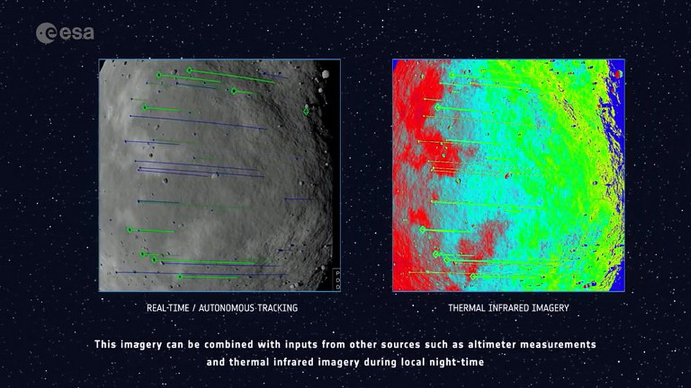 28 de marzo de 2025, mientras la misión de defensa planetaria Hera de la ESA sobrevolaba Marte, se fijó de forma autónoma en docenas de cráteres de impacto y otras formaciones superficiales prominentes para rastrearlas a lo largo del tiempo, en una prueba a gran escala de la tecnología de conducción autónoma que la nave empleará para navegar alrededor de sus asteroides objetivo. "No tuvimos tiempo de probar este seguimiento autónomo de las formaciones superficiales tan exhaustivamente como el resto de las funciones autónomas de Hera antes de partir de la Tierra", explica Jesús Gil Fernández, ingeniero de guía, navegación y control de Hera de la ESA. Sin embargo, durante el sobrevuelo de Hera sobre Marte, pudimos operarlo durante 20 minutos. A pesar de que la nave espacial se movía varios órdenes de magnitud más rápido y a una mayor distancia del planeta rojo de lo que se moverá alrededor de su destino final, nuestro sistema logró adquirir de inmediato características completamente nuevas para él, en todo Marte. Luego, con una nueva imagen adquirida cada 48 segundos utilizando la Cámara de Encuadre de Asteroides de Hera, pudo continuar rastreándolas durante toda la prueba. Seguimiento autónomo de características superficiales de Hera durante el sobrevuelo de Marte. El seguimiento de puntos de referencia ya se ha demostrado con características previamente cartografiadas, pero rastrear marcas no cartografiadas de esta manera es realmente inédito. Este experimento tecnológico se consideró de antemano algo arriesgado, ya que si bloqueaba la computadora de vuelo de cualquier manera, Hera podría no haber adquirido el resto de sus datos científicos de Marte. Afortunadamente, el sistema funcionó muy bien, lo que nos da mucha confianza en la fase de la misión de Hera, cuando utilizará esta técnica para navegar de forma autónoma alrededor de sus asteroides y adquirir imágenes de cerca del cráter producido por el impacto de la sonda espacial DART de la NASA en el asteroide Dimorphos. El 12 de marzo, Hera se acercó a 5700 km del planeta rojo, utilizando su campo gravitatorio para desviar la trayectoria de la nave hacia su destino final: Dimorphos y el asteroide de mayor tamaño, Didymos, alrededor del cual orbita. Esta maniobra acortó el tiempo de viaje de Hera en varios meses y ahorró una cantidad sustancial de combustible. Durante las operaciones de proximidad de Hera, que comienzan a unos 30 km de distancia, navegará cerca de los asteroides de diversas maneras. Para comenzar, la nave mantendrá... El cuerpo más grande de Didymos, encuadrado por sus cámaras como punto de referencia general, observa el contraste entre los bordes del asteroide y el espacio profundo que lo rodea. Al acercarse, el sistema de guía, navegación y control (GNC) de Hera cambia a "seguimiento de centroide", centrándose en las áreas brillantes iluminadas por el Sol hacia el centro del asteroide. Hacia el final de su fase de investigación de seis meses, Hera se acercará a menos de 2 km del asteroide más pequeño, Dimorphos, momento en el que su campo de visión quedará completamente cubierto por la superficie del asteroide. En este punto, el seguimiento autónomo de la superficie se vuelve esencial: al capturar imágenes de las mismas características, como rocas y cráteres, en imágenes sucesivas, Hera podrá calcular su propia altitud y trayectoria con respecto a Dimorphos. El sistema autónomo de seguimiento de la superficie adquiere hasta 100 características, distribuidas equitativamente en cuatro cuartas partes de la superficie del objetivo, pero utiliza solo las seis primeras para calcular su posición y dirección relativas, con el fin de limitar su carga computacional. "Estamos encantados con el éxito de este experimento tecnológico", añade Jesús. "Esto es algo que ninguna agencia espacial había hecho antes. La misión de asteroides OSIRIS-Rex de la NASA realizó navegación óptica autónoma para facilitar la adquisición de muestras de la superficie, pero solo después de realizar un mapeo detallado con antelación, lo que permitió la coincidencia con puntos de referencia conocidos. Nuestro sistema no necesita conocimientos previos de superficie para empezar a navegar, lo que le otorga un gran potencial”. Hera realiza un procesamiento basado en visión de las características de la superficie utilizando un núcleo separado del ordenador principal de vuelo de la nave espacial, de forma similar a como un portátil para juegos podría incluir una tarjeta gráfica dedicada. Además, Hera cuenta con una Unidad de Procesamiento de Imágenes (IPU) construida por GMV, que funciona con dos microprocesadores de matriz de puertas programables (MPGA) personalizados. El software específico para operar esta IPU desde el ordenador principal de Hera aún se está finalizando, antes de la llegada de la misión a Didymos a finales de 2026, pero podrá realizar el mismo procesamiento basado en visión en una fracción de tiempo, lo que ofrece un gran potencial para misiones posteriores.